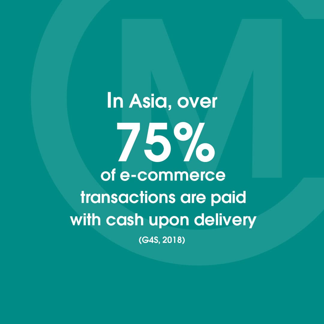 In Asia, over 75% of e-commerce transactions are paid with cash upon delivery (G4S, 2018)